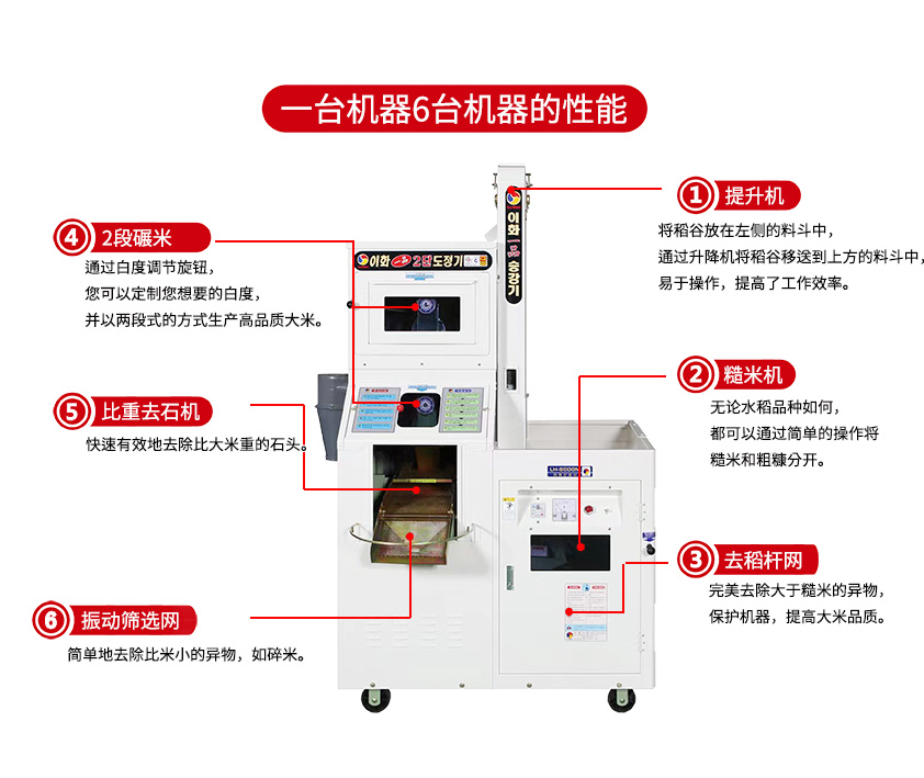 一次性完成糙米、白米、去石、去异物的完美碾米。