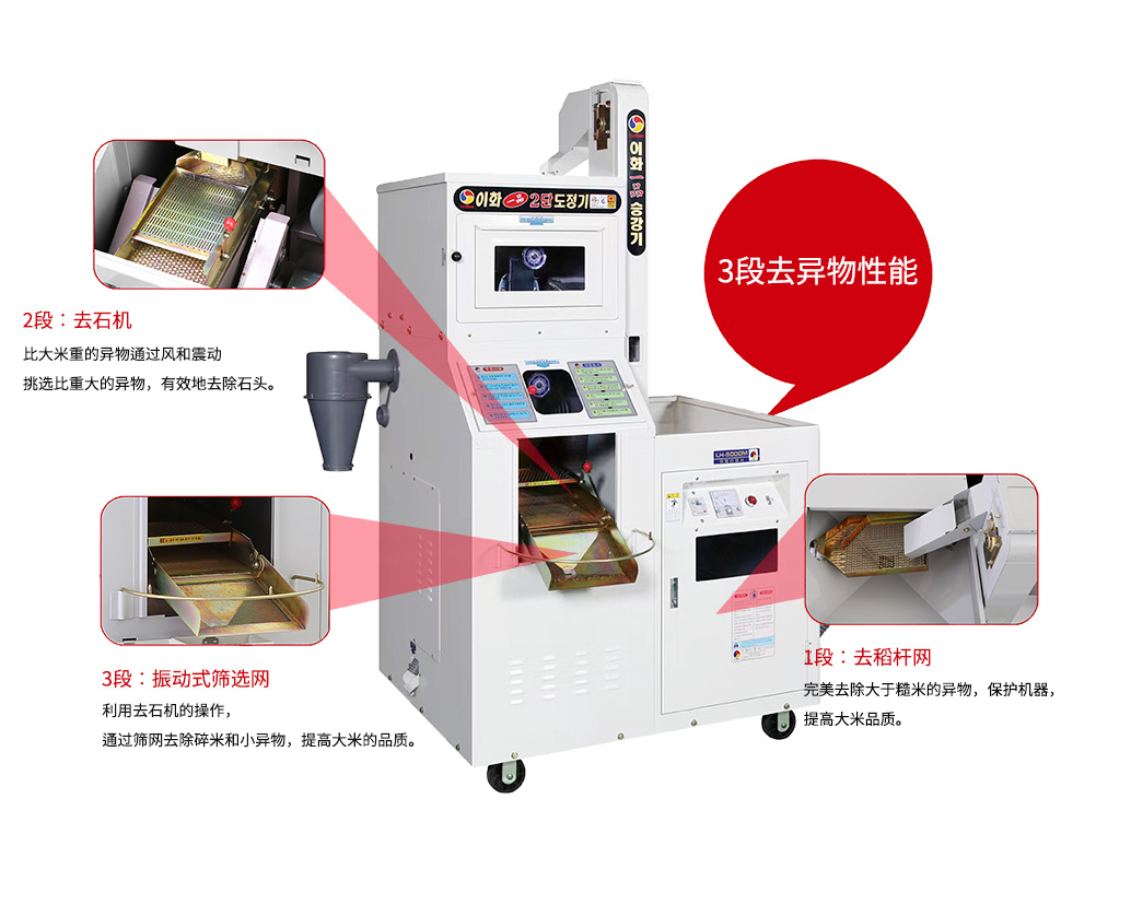 ① 通过2段碾米室,生产出最佳清洁的大米