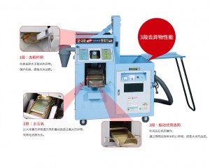 ③ 粗糠可以排得很远,收集米糠的布袋可以固定得很高