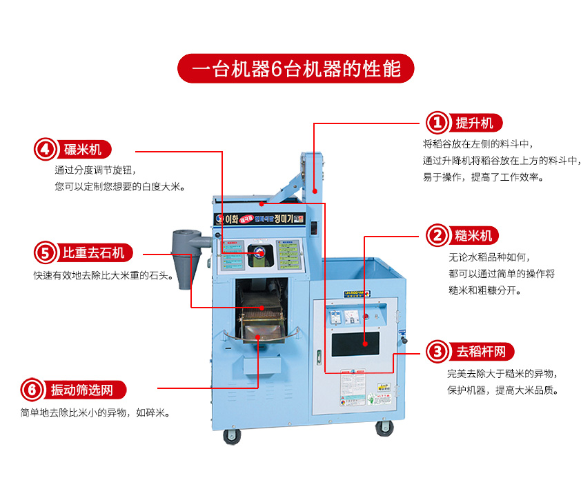 一次性完成糙米、白米、去石、去异物的完美碾米。