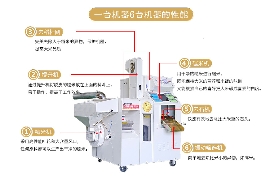 一次性完成糙米、白米、去石、去异物的完美碾米。