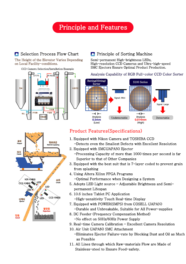 ●Equipped with high-sensitivity sensors on both-sides, it precisely selects even the smallest defective products.